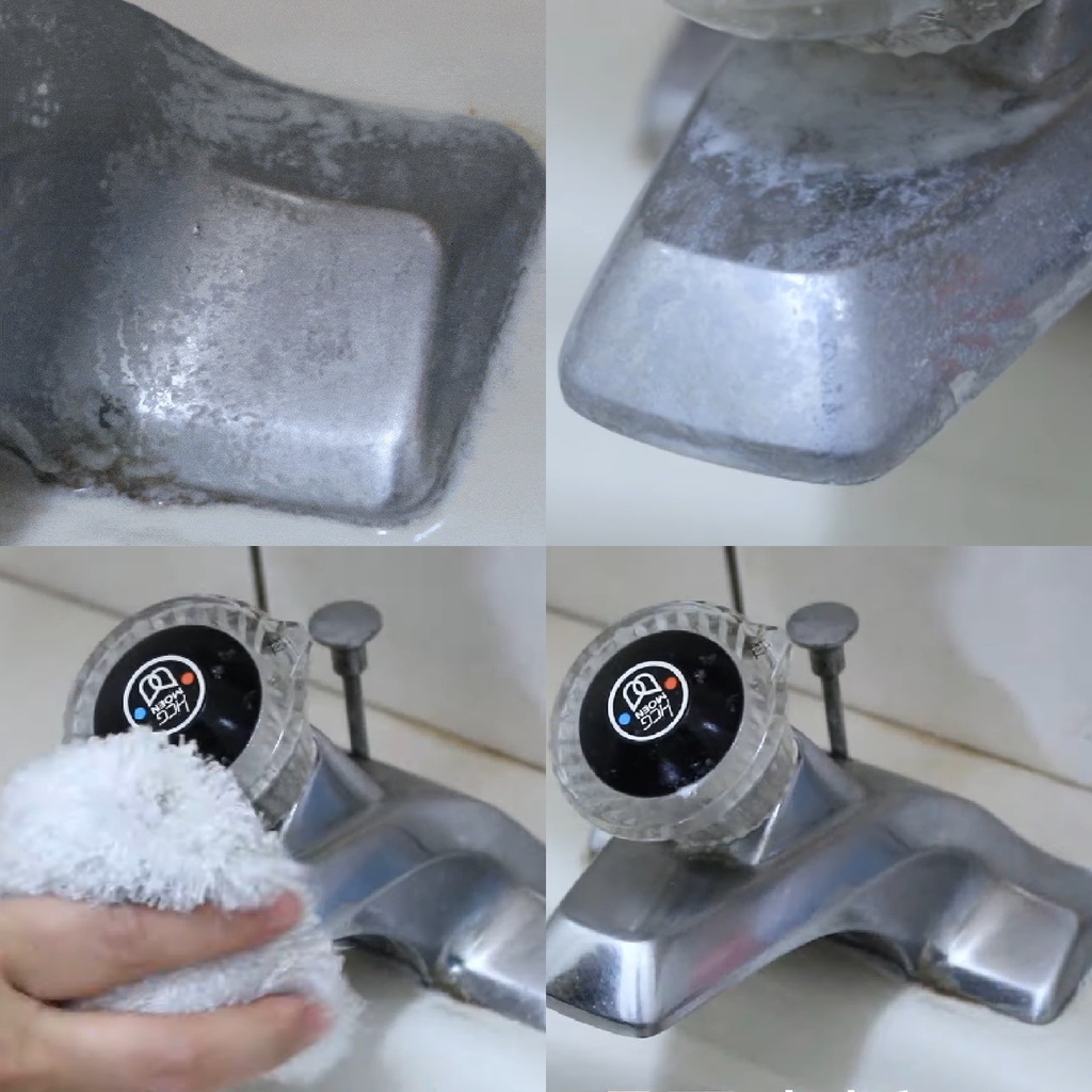 - 乾溼表面皆可噴,快速分解長期累積的水垢、皂垢、垢石、銹斑、鈣沉澱,深層溶解污垢